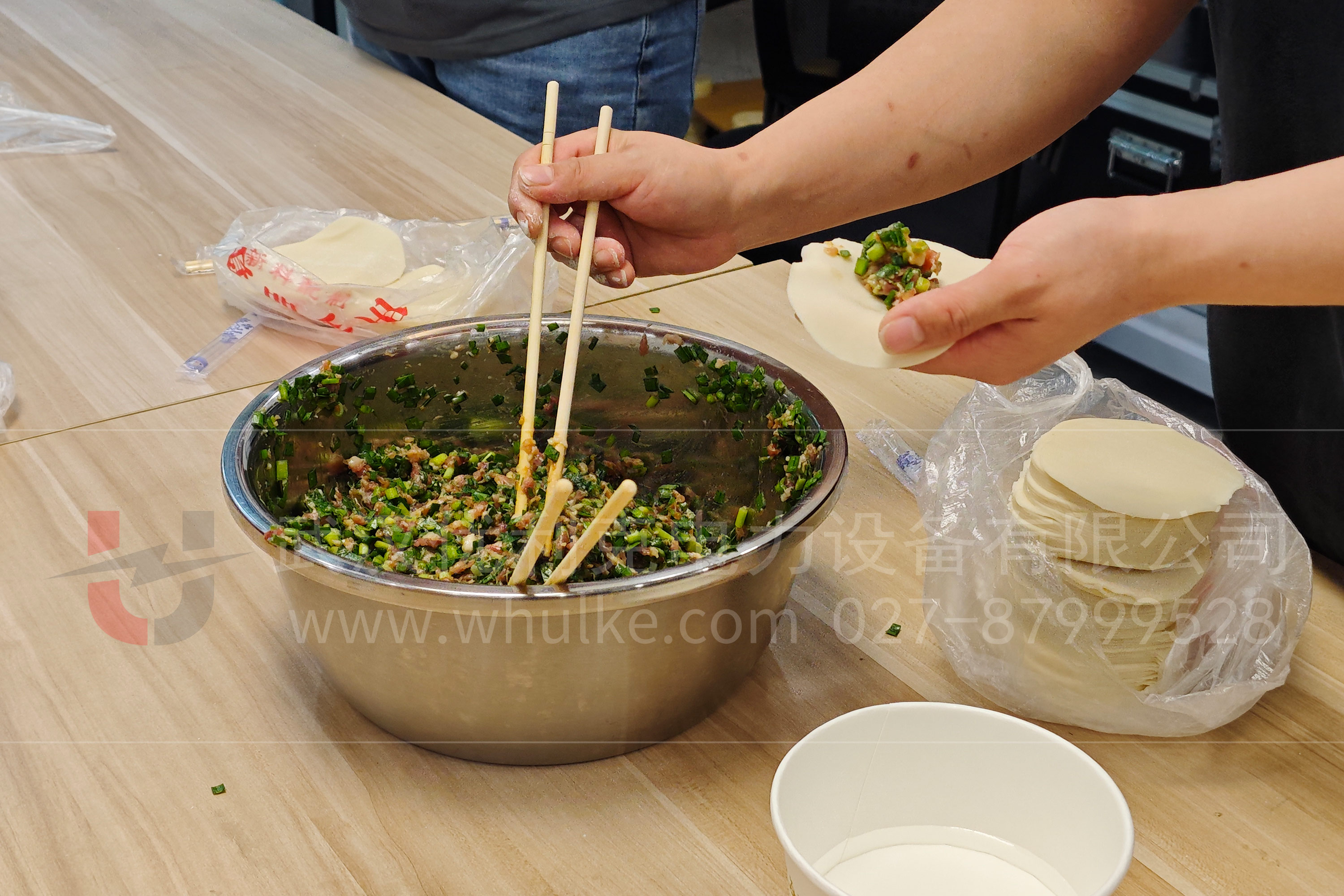 的肉餡,散發著誘人的香氣。員工們陸續來到現場,大家紛紛擼起袖子,迫不及待地加入這場 “餃香盛宴”。?